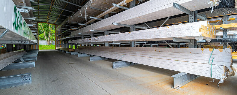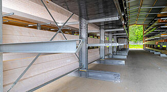 Firma Abies Polska se proto rozhodla nahradit skladování na zemi konzolovými regály. Společnost OHRA k tomu dodala celkem osm regálů, každý z nich vybavený šesti skladovacími úrovněmi. Nejhořejší úroveň se nachází ve výšce pěti metrů – tím lze výrazně lépe využít disponibilní plochu venkovního skladu. Regály, které nesou vždy jednu střechu po obou stranách přečnívající o 2,7 metru, jsou sestaveny tak, že se střechy překrývají. Dodatečnou ochranu zajišťuje opláštění vnějších stěn, které bylo podle zadání stavebního úřadu provedeno z vysoce kvalitních plechů. Regálová sestava tudíž tvoří samostatnou, velmi kvalitní budovu.