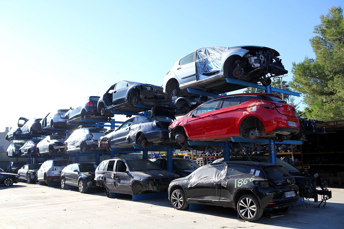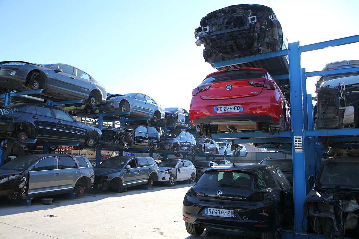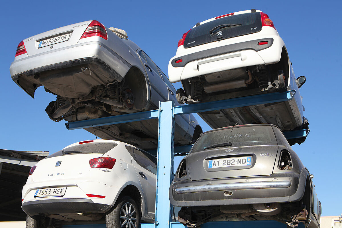 Na mnoha autovrakovištích se dodnes skladují ojetá vozidla jednoduše stohováním v několika patrech nad sebou. To s sebou nese nejen vyšší riziko s ohledem na bezpečnost a ochranu zdraví při práci, ale znemožňuje to také cílený přístup k určitému vozidlu. Firma Desguace Alarcón se proto rozhodla použít konzolové regály od společnosti OHRA: Osobní vozidla se usazují na třech úrovních na dvě konzolová ramena dlouhá vždy 1 800 mm. Přístup ke každému vozidlu je tak kdykoliv možný bez nutnosti stohovat je někam jinam, a to i když je umístěno úplně dole.