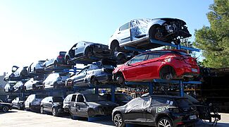 Španělská firma Desguace Alarcón provozující autovrakoviště rozšířila své kapacity pro uskladnění ojetých vozidel využitím konzolových regálů od společnosti OHRA. 40 regálů ve venkovním skladu, přičemž na každém z nich může být uskladněno šest osobních vozidel vážících až 1 600 kg, nabízí nyní prostor pro další rozvoj podniku. Ze všeho nejvíc přesvědčila flexibilita zavěšených, výškově přestavitelných konzolových ramen: Nejenže se díky nim dá podle potřeby kdykoliv upravit výška regálů, ale ty jsou navíc poddajné při nárazu, čímž chrání regál i uskladněná vozidla před poškozením.