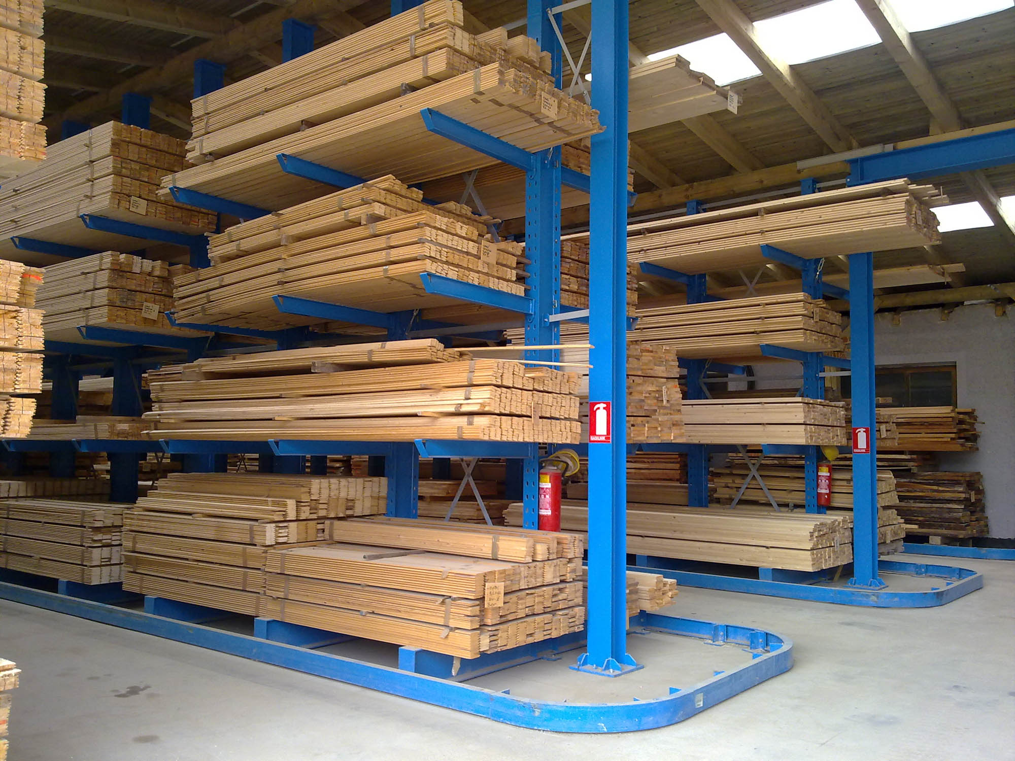 Nový, tří uličkový regál s výškou 5,7 metrů, nabízí celkovou skladovací kapacitu do 1.000 kubických metrů. Dřevěné produkty jsou skladovány ve čtyřech podlažích. 1.200 milimetrů dlouhé a s 1.250 kilogramy zatížitelné konzole regálového systému jsou flexibilně zavěšené a proto se při nárazech, například vysokozdvižným vozíkem, vychýlí. Práce vysokozdvižných vozíků je přitom ještě podporována vodícími lištami na regálech: Ty umožňují u ŠVELCE bezpečné využití dvou 4 cestných kombinovaných výtahových stohovačů.