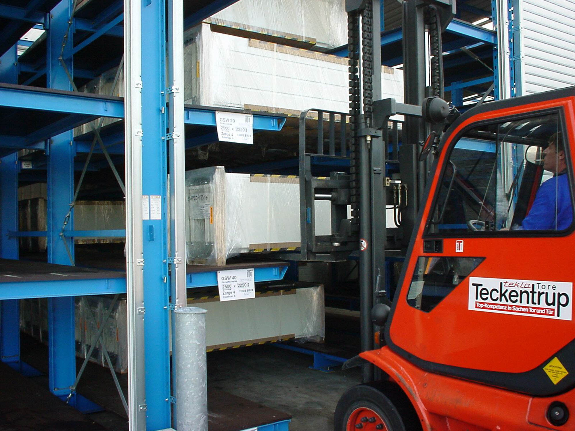 Společnost Tekla vyrábí vrata většinou na zakázku nebo v menších dávkách na různých místech v Německu. Ve Verl opouští sekční a rolovací vrata vysoce moderní výrobu a jsou kompletována a chystána na dopravu v OHRA regálech.